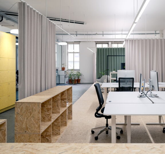 Auf knapp 500 Quadradmeter findest du über 40 Arbeitsplätze mit höhenverstellbaren Bürotischen, Räume für Meetings oder Workshops sowie Telefonnischen für vertrauliche Gespräche.